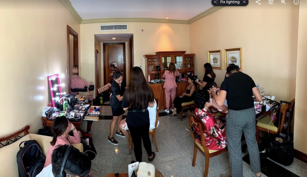 Amazingly enough, when you see so many people in one room get so many things done in a short frame of time, you can’t help but be a little bit impressed! Heh! In one room, you have the 2 makeup artists working their magic, 1 hair stylist doing her thing, along with the videographer and team.. and in the bedroom, you have the mommies getting ready. Haha, it was a tight fit.
